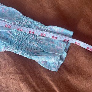 Sweet summery H&M dress. Size M, but would fit a range of sizes as it's a sack-style dress. 82% viscose, 18% polyamide. Last photo shows a spot on the back shoulder of the dress where the fabric has worn through. I didn't even notice it until I was photographing the dress! Could make for a fun mend project.