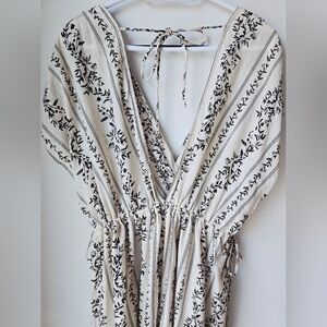 H&M Cover UP OFF White Black Floral Maxi Cotton Vacation Dress M L