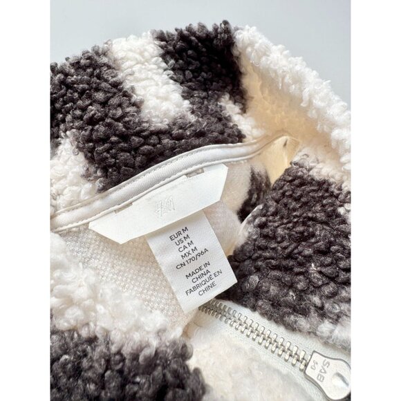 H&M Cream Black Patterned Sherpa Fleece Half Zip Top Teddy Sweater, Size M