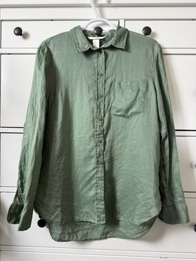 H&M Cream Button-Front Long-Sleeve Blouse with Trimmed Cuffs
