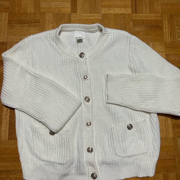 Soft knit sweater with ribbed texture. Ideal for casual wear. Can fit xs to medium.
