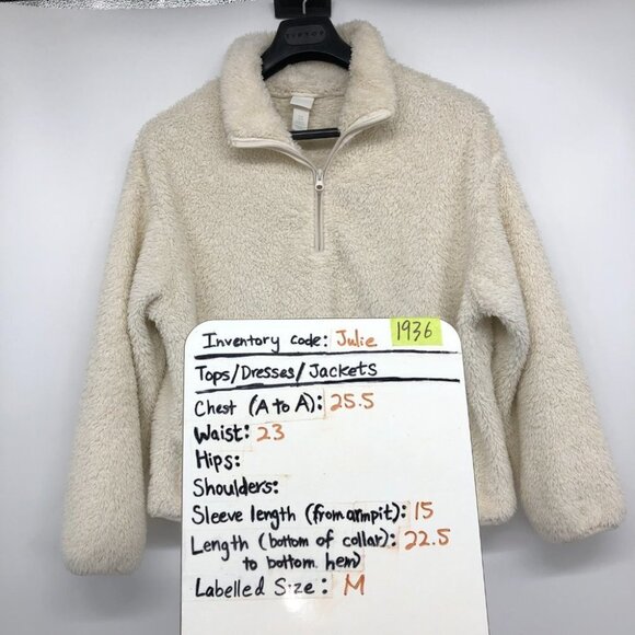 H&M Cream / Off White Short 1/4 Zip Teddy Jacket size M