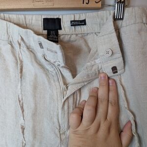 H&M Cream Relaxed Fit Women's XL 100% Linen Straight Leg Pant