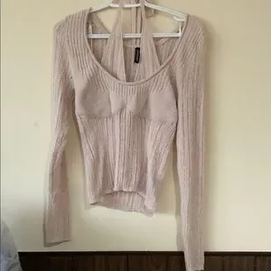H&M Cream Ribbed Bikini Halter Sweater