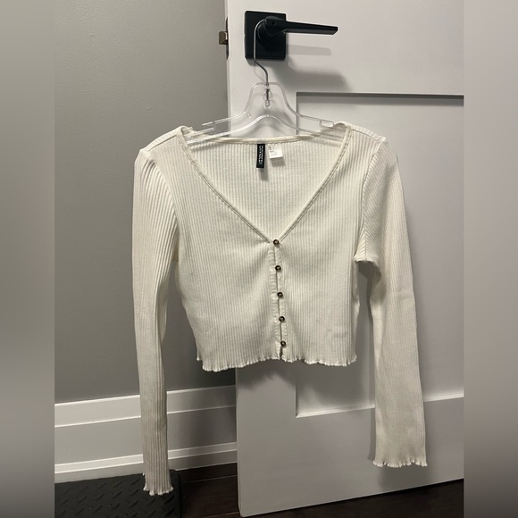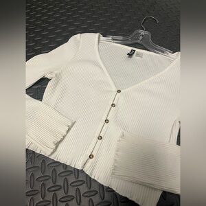 Stylish ribbed top with button-down front. Long sleeves and V-neck design. Perfect for layering. Fabric : 57% Cotton 38% Polyester 5% Elastane