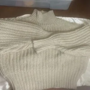 Elegant cream sweater with ribbed texture. Perfect for layering. Soft and stylish for any occasion.
