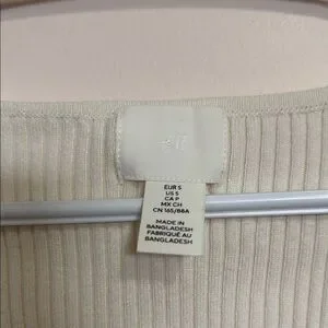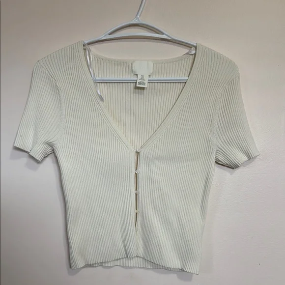 H&M Cream Ribbed V-Neck Button-Up Top