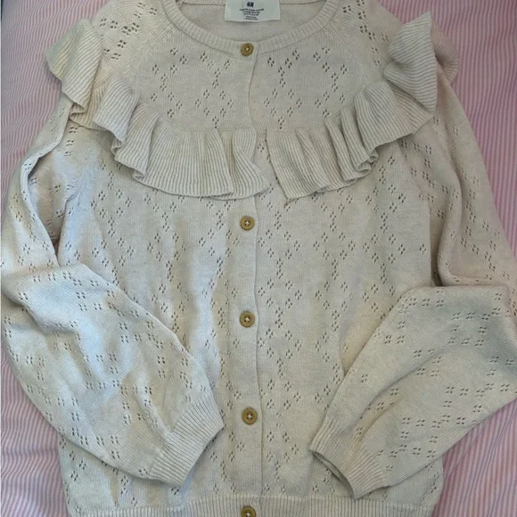 H&M Cream Ruffle Eyelet Knit Cardigan