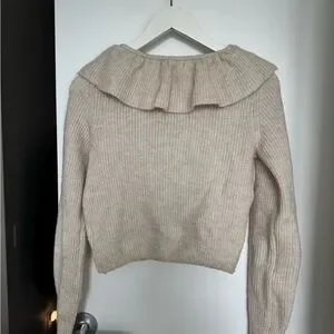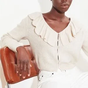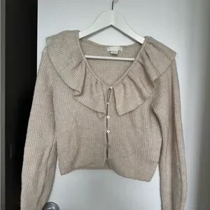 Chic cream cardigan with ruffled neckline. Perfect for layering. Size XS. -worn twice -EUC -No flaws