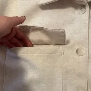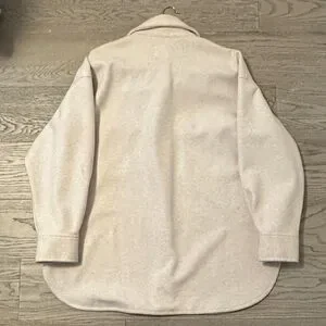 Stylish cream shacket by H&M. Features button front and two large chest pockets. Ideal for versatile wear and perfect for layering.