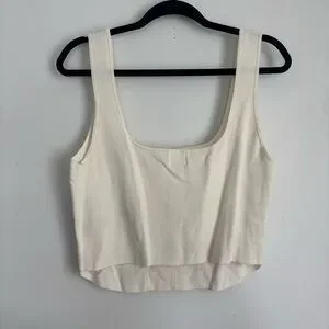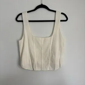 H&M Cream Structured Square-Neck Crop Top