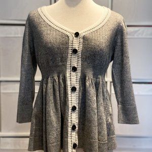 H&M Cream and Grey Wool Peplum Button Up Sweater