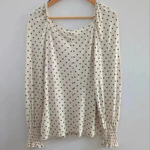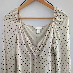 H&M | Cream with Black Polka Dots V-Neck Wrap Style Long Sleeve Top