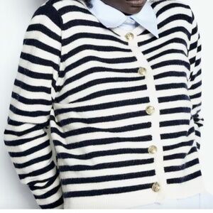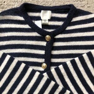 Crewneck, cropped length.long sleeves, button down with decorative buttons.