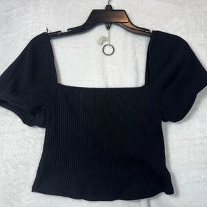 H&M Crop Top Womens Size Medium Black Short Sleeve Y2K Preppy Ribbed Goth