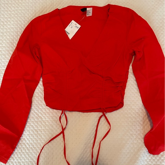 Brand new crop top, never worn. Buy too small. Red/orange color, belted at the waist corset style.