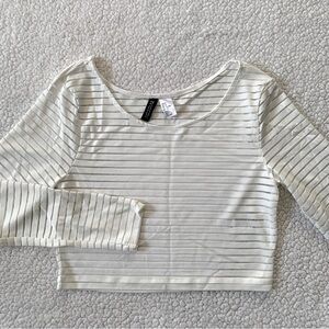 H&M Cropped Long Sleeve Top Size : Small Color: White & Transparent Stripes Excellent condition- Never worn