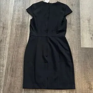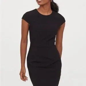 Chic black mini dress with cap sleeves. Perfect for any occasion. Sleek and stylish.