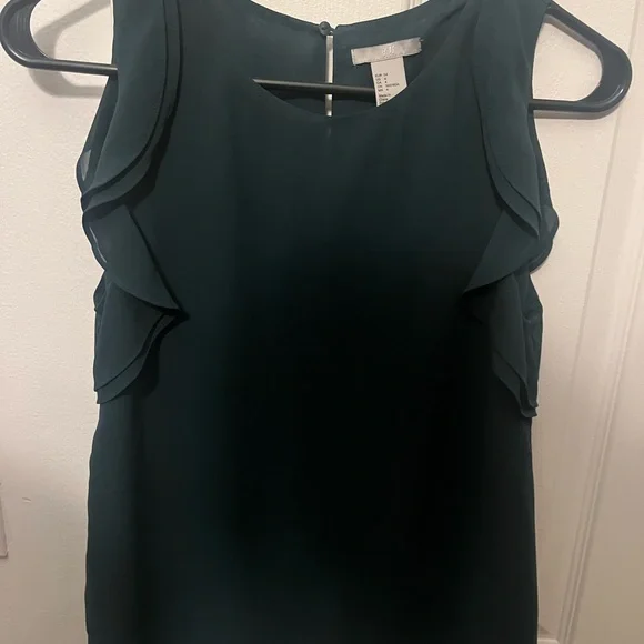 Chic dark green blouse with ruffle details. Sleeveless design. Perfect for versatile styling.