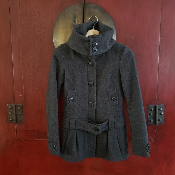 H&M Dark Grey Wool-Blend Pea Coat - Size 4