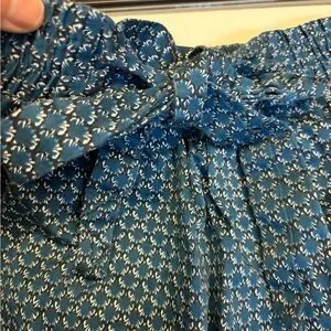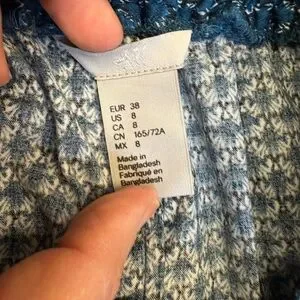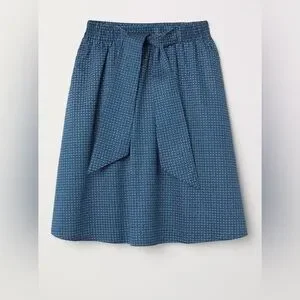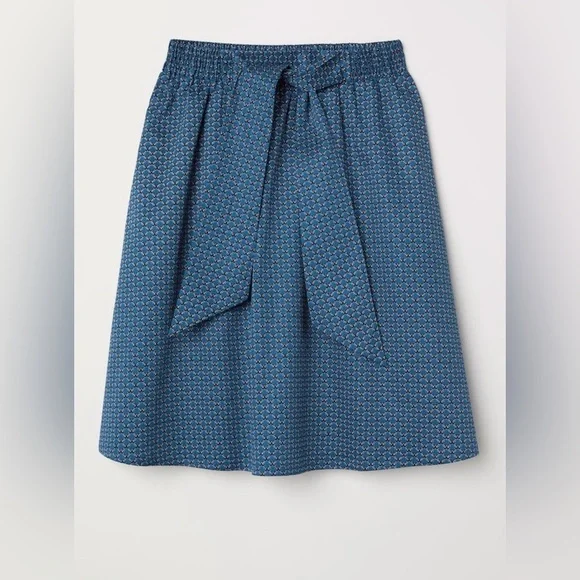 Description: This knee-length A-line skirt from H&M features a calming blue color and a stylish tie front detail at the waist. The subtle geometric print adds a touch of sophistication, making it perfect for both casual and work occasions.