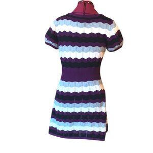 H&M - Delicate Knit Zig-Zag Striped Dress – Grey, White, Black & Purple Size M/L