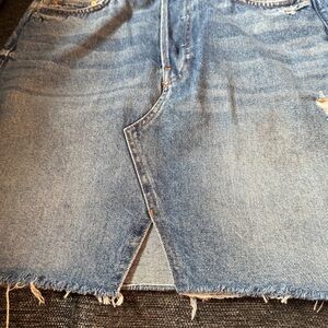 Stylish denim blue skirt with a chic front slit. Perfect for casual outings.
