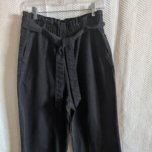 H&M, Wide Leg, High Waist, Ankle Pants, Cropped, Pull On, Tie Belt, Pockets, Faded Black, Size 8, Casual Chic, Workwear, Business Casual, Paperbag Waist, Faded Black, Charcoal