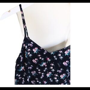 H&M Ditzy Floral Print Strappy Slip Dress With V Cut Navy Blue Size 8
