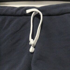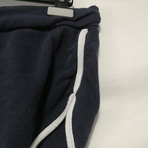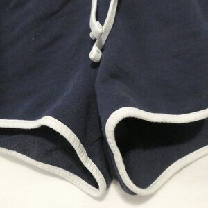 Comfortable and stylish navy blue athletic sweat shorts with white trim and an adjustable drawstring for a secure fit