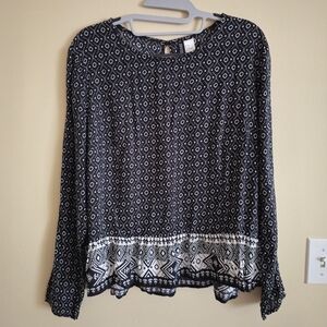 H&M Divided Black & White Patterned Long Sleeve Blouse Flounced Hem Size 14 - in excellent used condition.