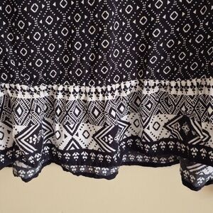 H&M Divided Black & White Patterned Long Sleeve Blouse Flounced Hem Size 14