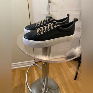✅🆕 H&M Divided Black lace up sneakers, platform white base - new laces added🤎🤍