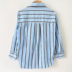 H&M Divided light blue stripe matching shirt and shorts set. Relaxed button-up shirt with elastic waist shorts. Easy vacation / casual summer co-ord.
