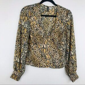 H&M Divided Cerise Leopard Print V-Neck Long Sleeve Cropped Blouse Tunic Women 6