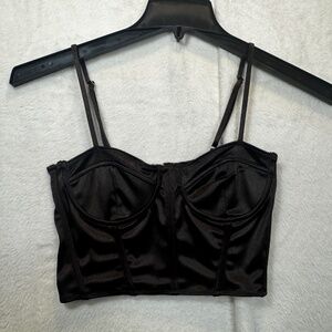 H&M Divided Crop Top Womens Size Small Black Sating Whimsigoth Coquette nvf