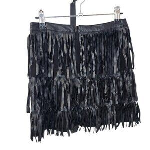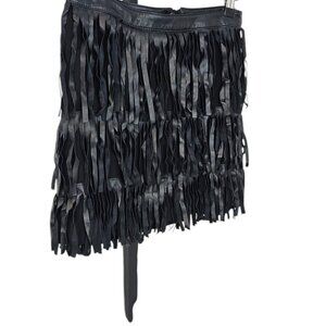 H&M Divided Faux Leather Fringe Mini Skirt, Moto, Black, Size 6