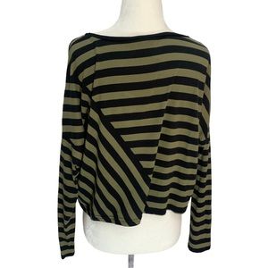 H&M Divided Khaki &Black Striped Cropped T-shirt Size M