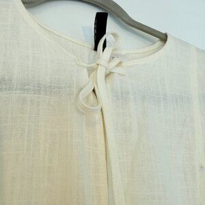 A soft and romantic linen-blend dress featuring puff sleeves, front tie details, and a gently gathered waist. The cream color gives it an effortlessly elegant, cottagecore feel. Lightweight and breezy — perfect for summer days, garden strolls, or minimal chic styling.