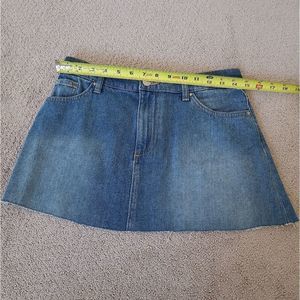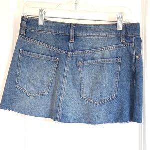 Blue wash, raw hem denim mini skirt. 100% Cotton Size 6, like new condition