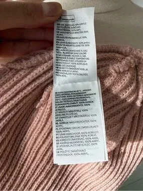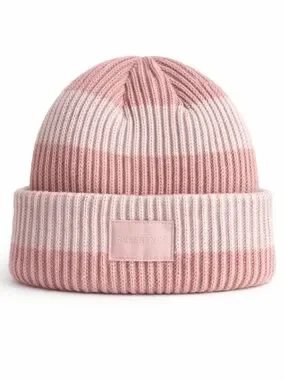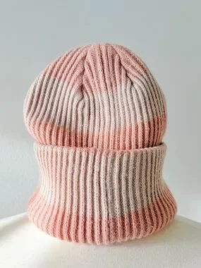 Soft ribbed knit beanie from H&M Divided in a light pink tone with subtle tie-dye effect. Cozy and stretchy, easy to style with casual winter outfits. Fold-over cuff with logo patch on the front.