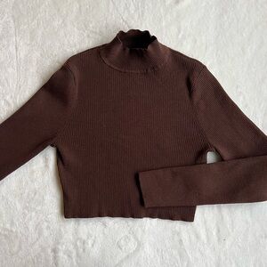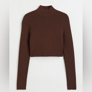 H&M Brown Ribbed Cropped Mock Neck Sweater