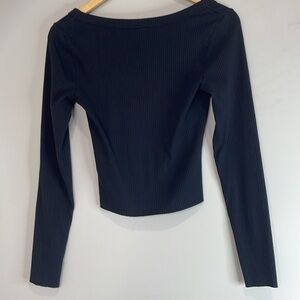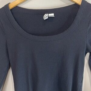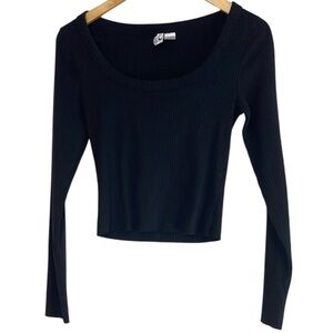 H&M Divided Ribbed Scoop Neck T-Shirt Black Long Sleeves Stretch Raw Hem S