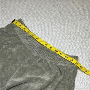 These Divided sage green terry cloth athletic shorts offer a relaxed fit perfect for active days. Crafted from a plush, velour-like material, they provide a soft and comfortable feel. The elastic waistband ensures a secure fit, making them ideal for both workouts and casual wear.