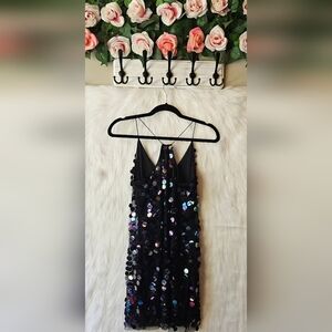 Elegant black dress by H&M Divided, for the social butterfly within, featuring gorgeous, shimmering iridescent sequins. Ideal for festive events, parties, and clubbing. Slide into it and let your night begin.