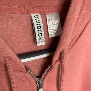 H&M Divided Sweatshirt Hoodie Pink Full Zip Cotton Size L