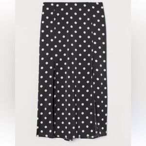 H&M Divided polka dot a-line silky satin midi length high slit skirt size XL