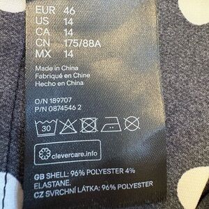 Description: Zipper closure. Step out in timeless style with the H&M Divided polka dot A-line skirt. Its silky satin finish and midi length provide an elegant silhouette, while the high slit adds a touch of allure. Perfectly balancing comfort and fashion, this skirt is crafted from a blend of polyester and elastane, ensuring a flattering fit for size 14. Featuring a chic black color with a playful polka dot pattern, this piece is versatile enough for both day and evening looks. The high-rise design complements the A-line cut, creating a classic and sophisticated appeal. Whether you're dressing up for a special occasion or adding some sophistication to your office wear, this skirt is a wardrobe must-have.