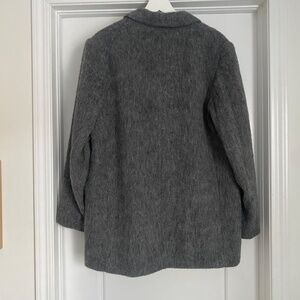 Fabric is intended to have texture. Versatile item as it can be worn as a blazer in Fall/Winter/Spring or worn as a jacket in the Fall/Spring.
