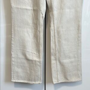 These high rise jeans from H&M feature a clean and minimalist design in a versatile cream ecru color. Slightly wider straight leg style. Crafted from traditional denim, they offer a timeless look that pairs effortlessly with any outfit. Excellent new condition.